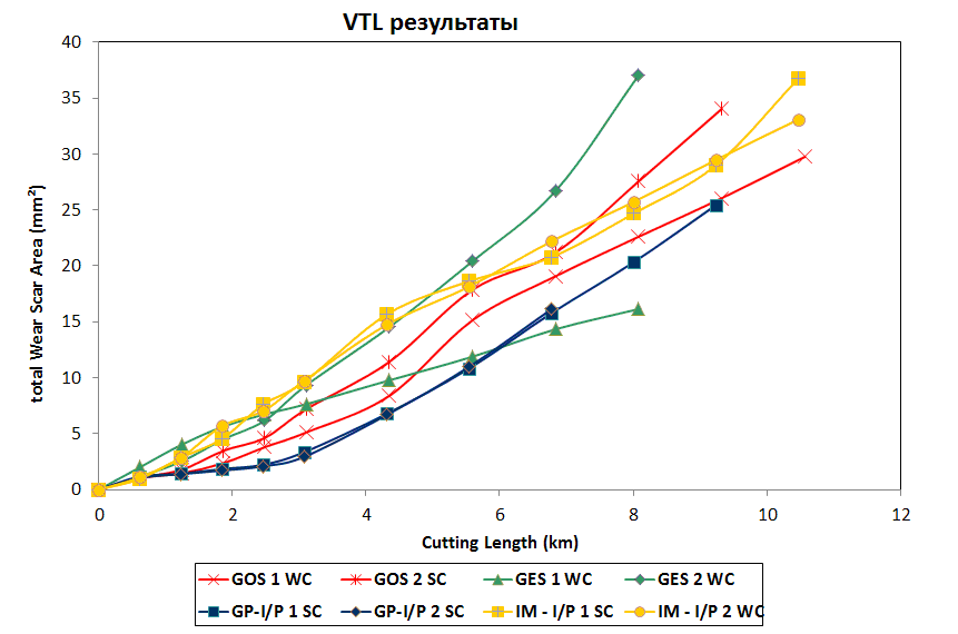 - Результаты этих тестов следует рассматривать в сочетании с тестами на износ (VTL) т.к. по мере износа резцов в долоте ударная стойкость является основной причиной разрушения резцов.