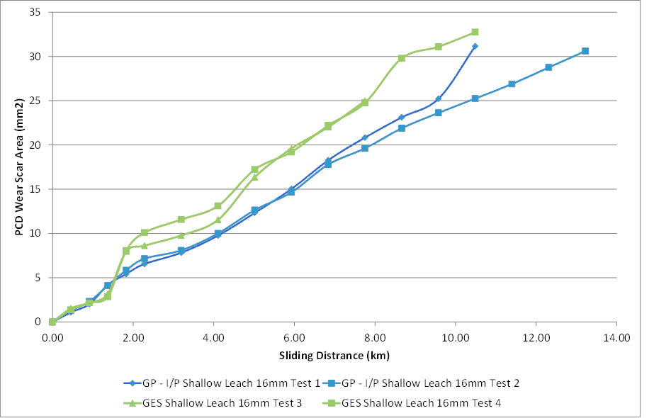 Сравнение износостойкости GP-1 и GES, вышелоченных на 100 мкм (shallow leach)